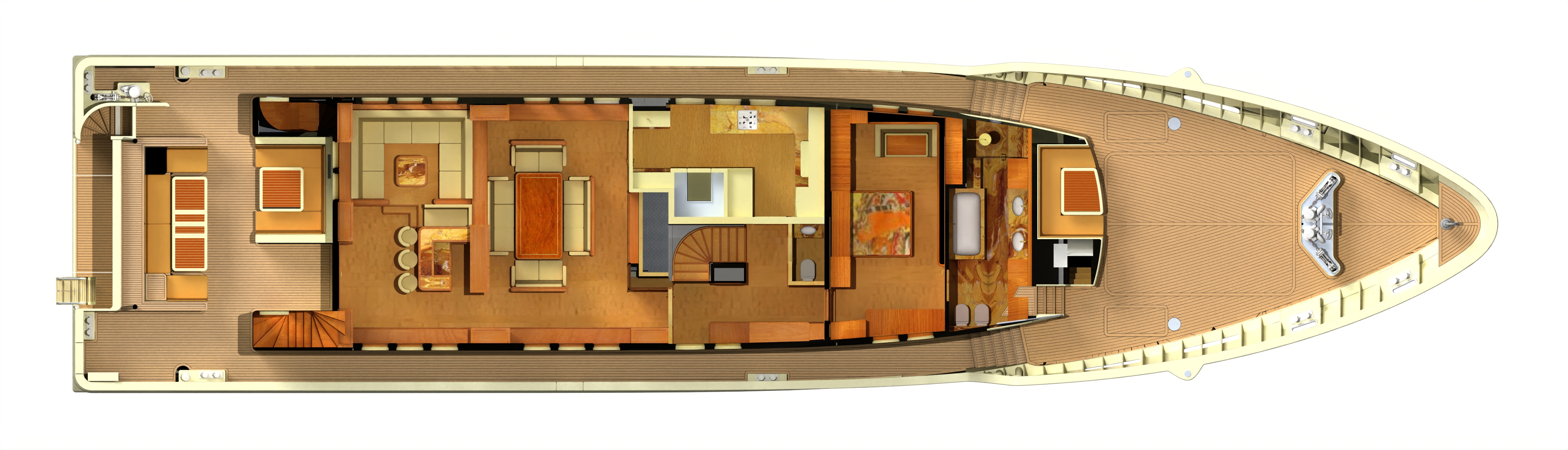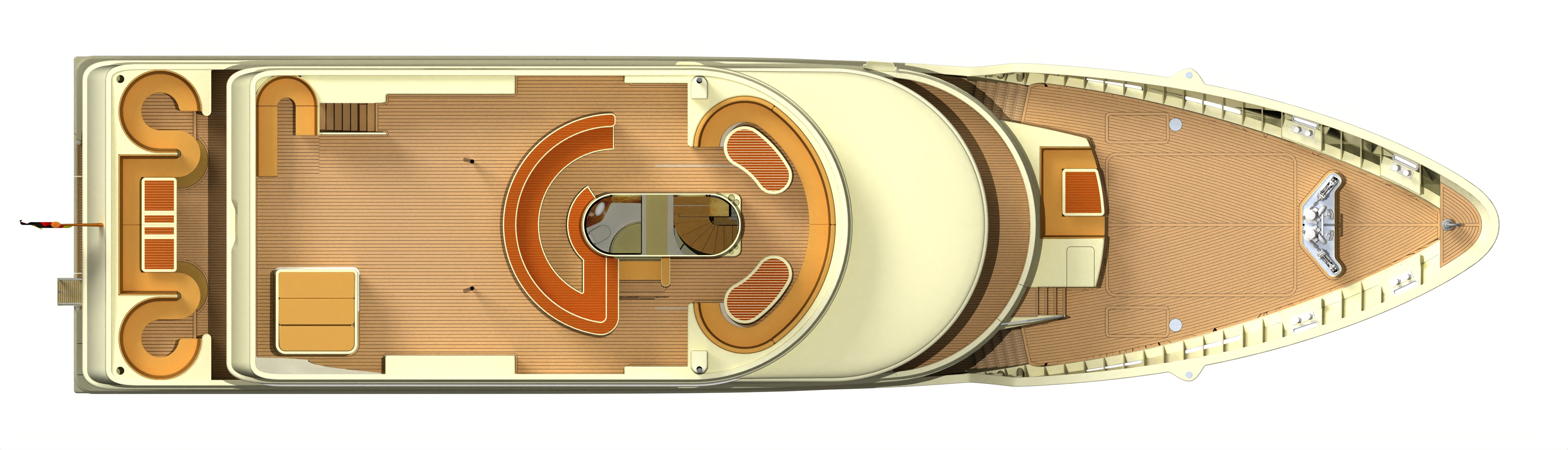 Sun Deck with access via the companionway in the Funnel and the ascent from the Bridge Deck