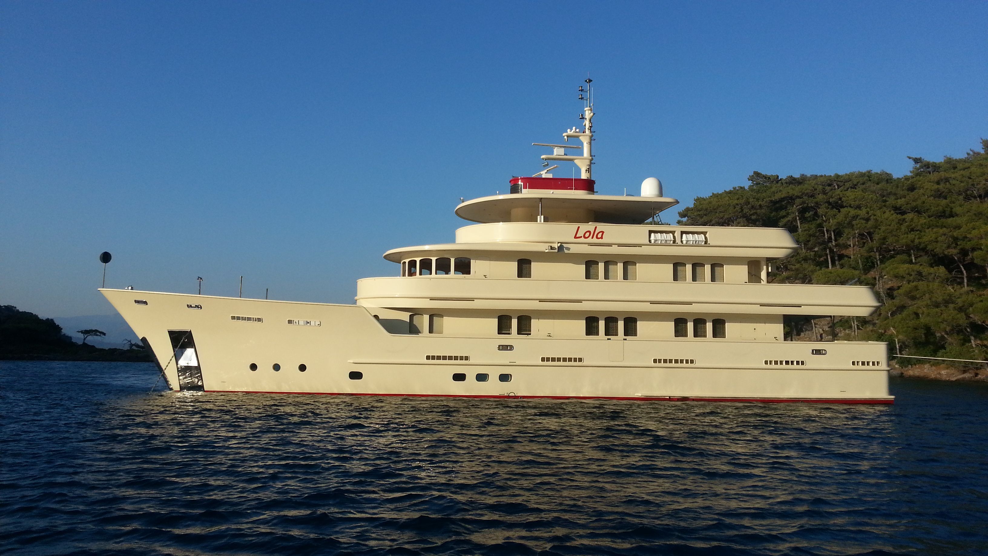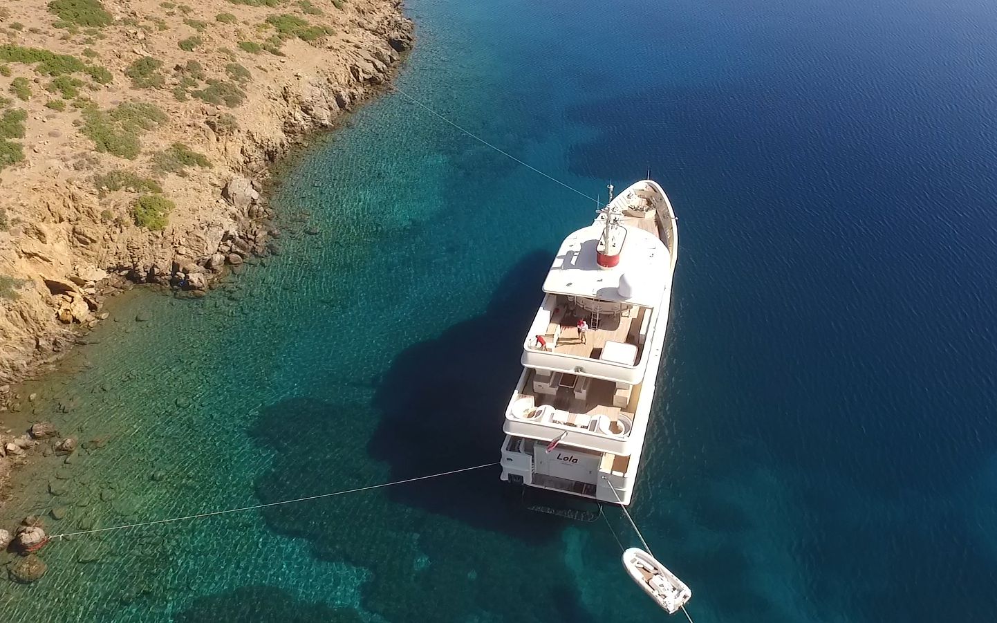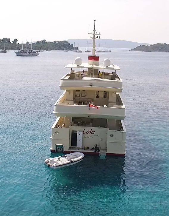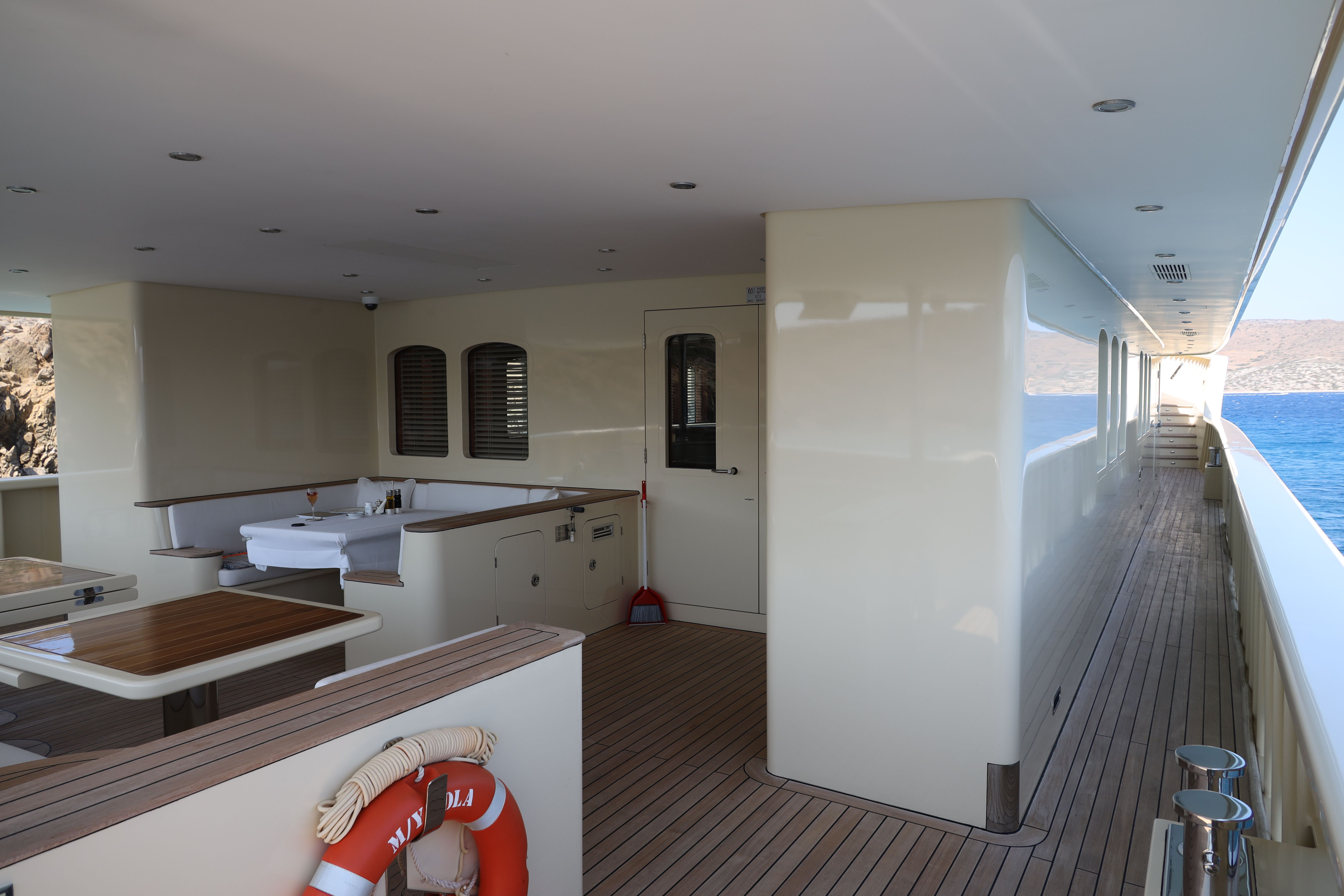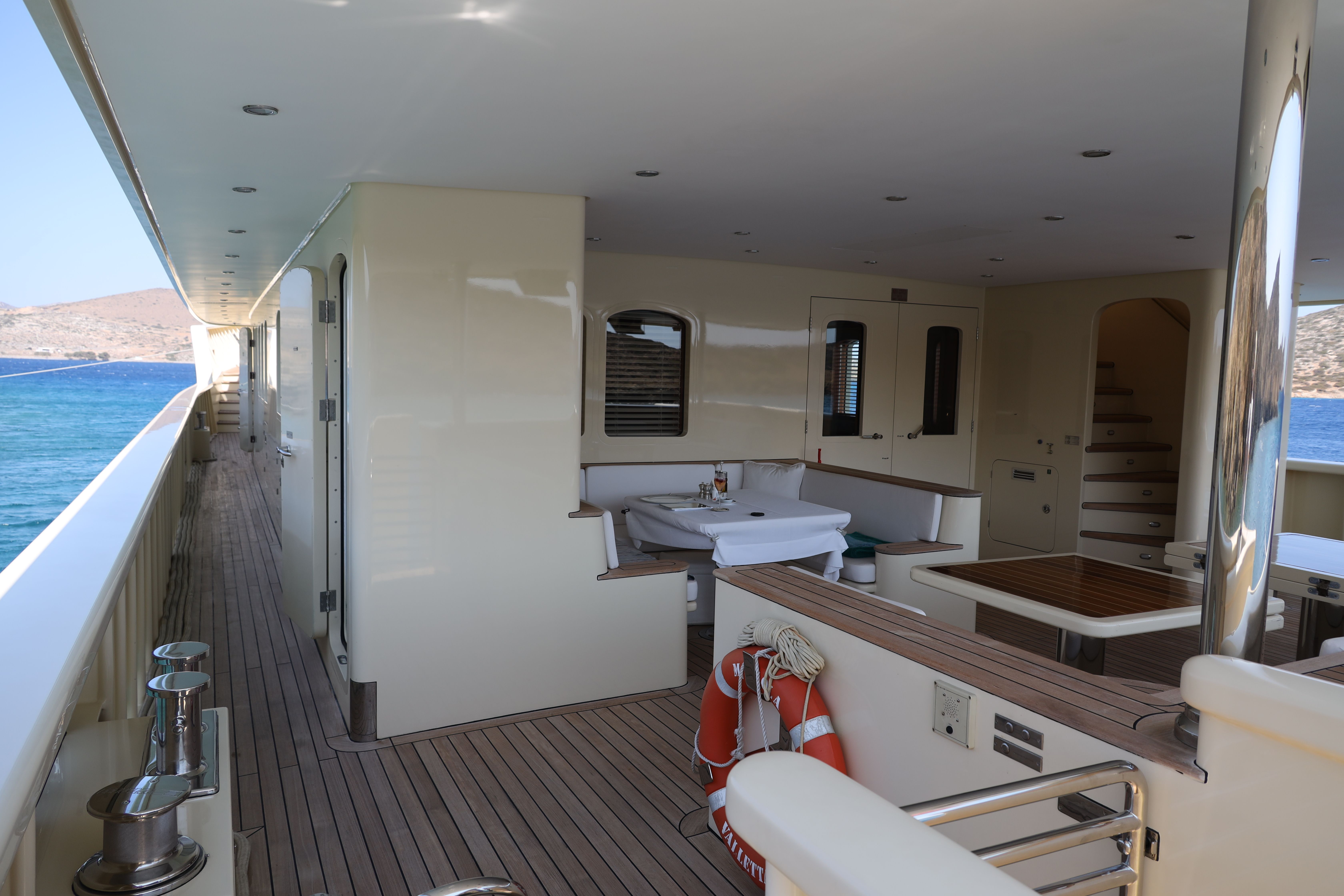 Discover the shape and the many sunny or wind and rain protected places on deck of Lola
